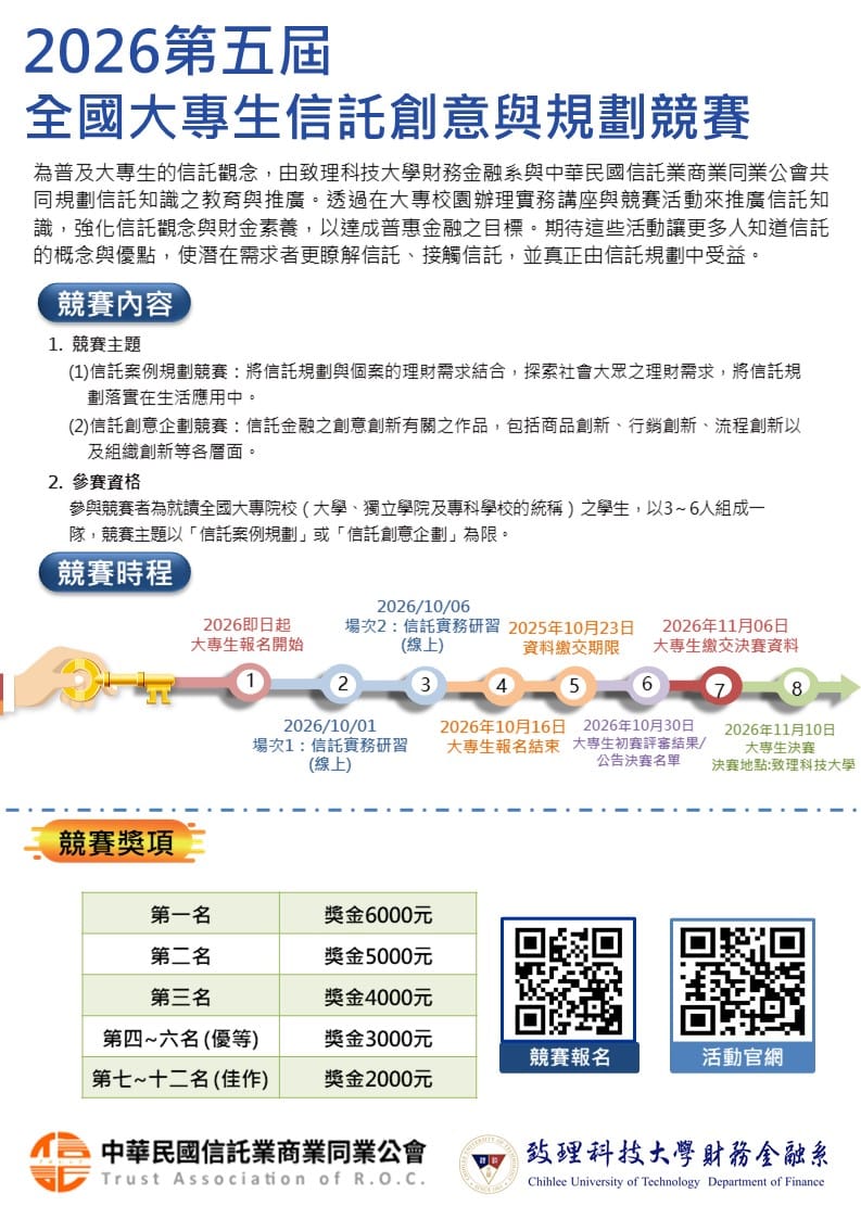 2026第五屆全國大專生信託創意與規劃競賽開始報名囉