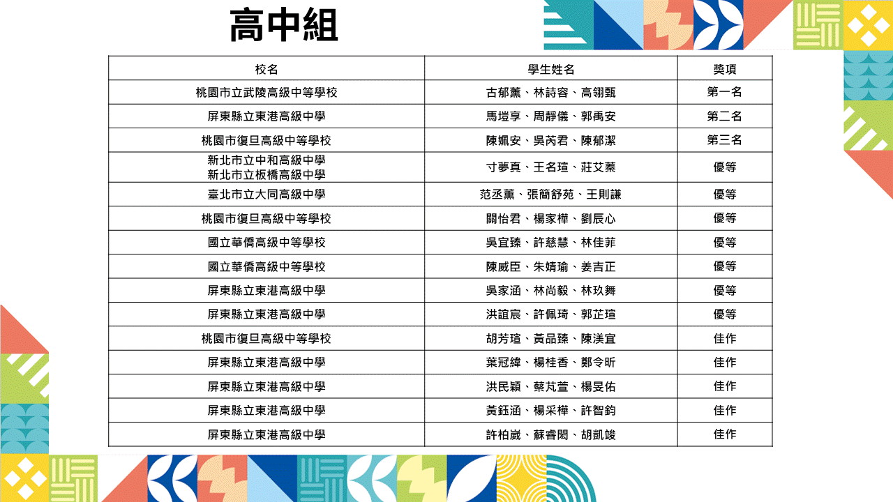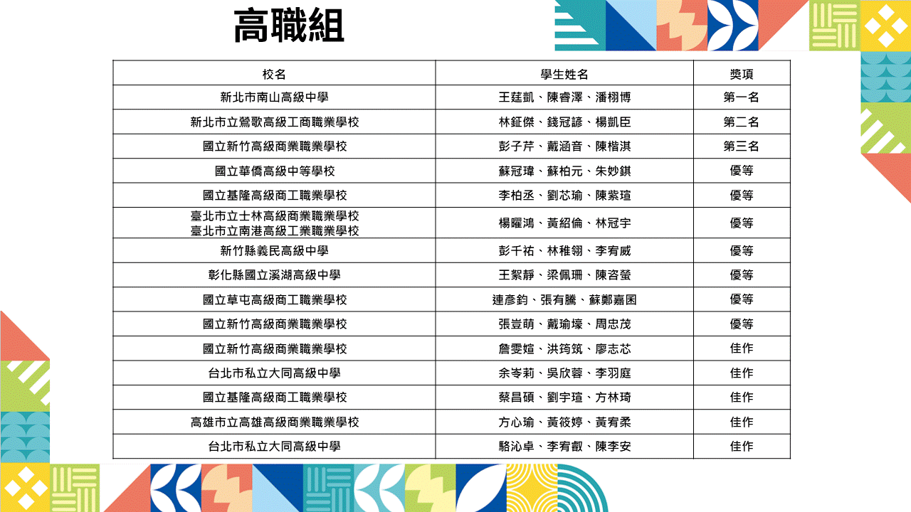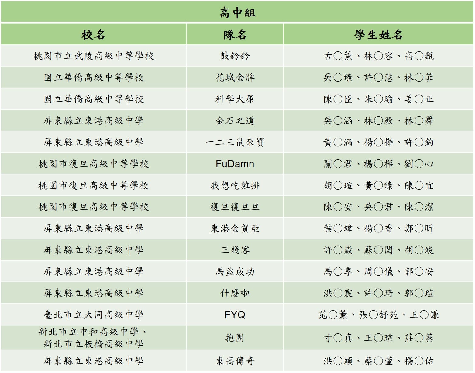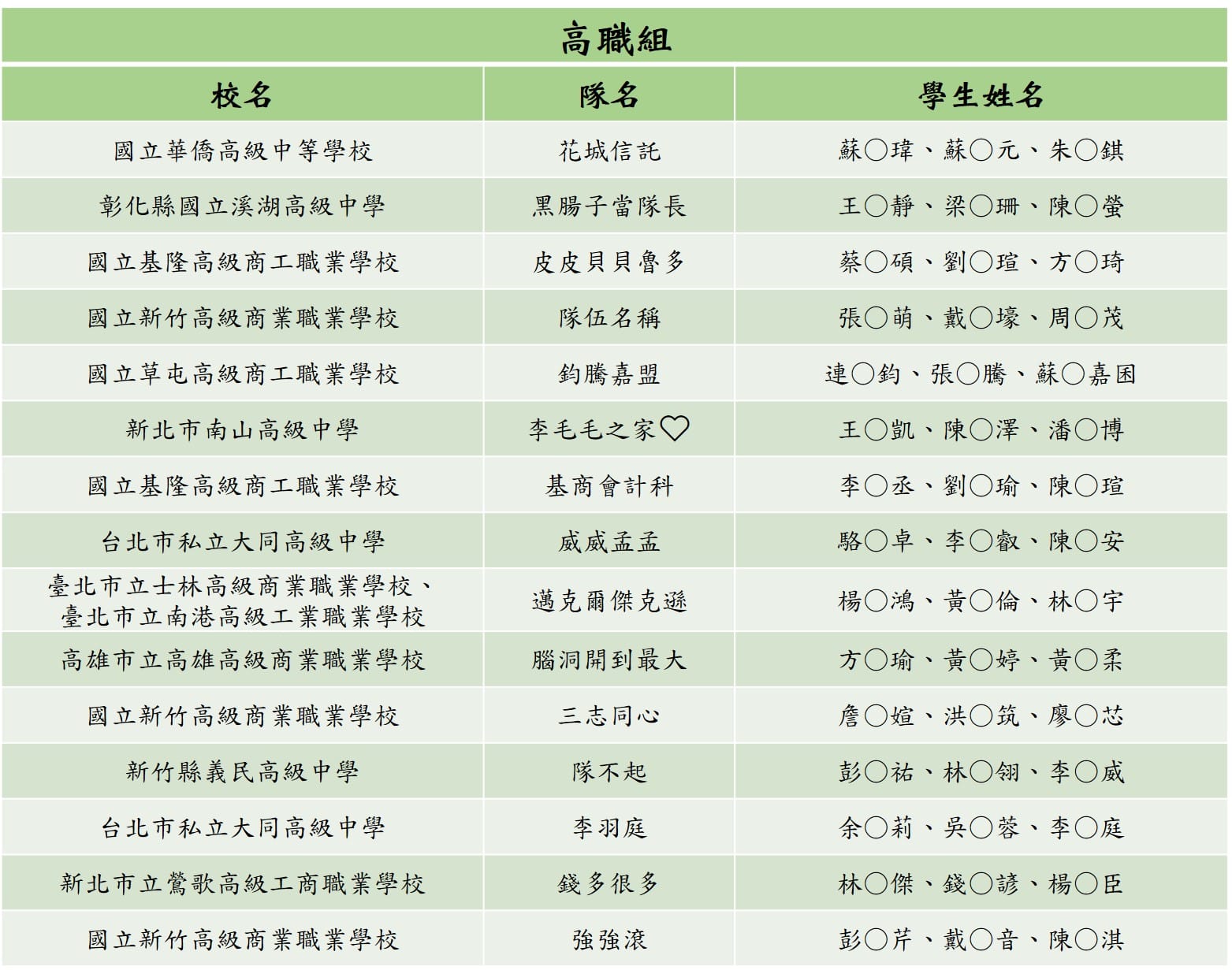 2.高中組與高職組分開競賽,每組各錄取15隊進入實體決賽。